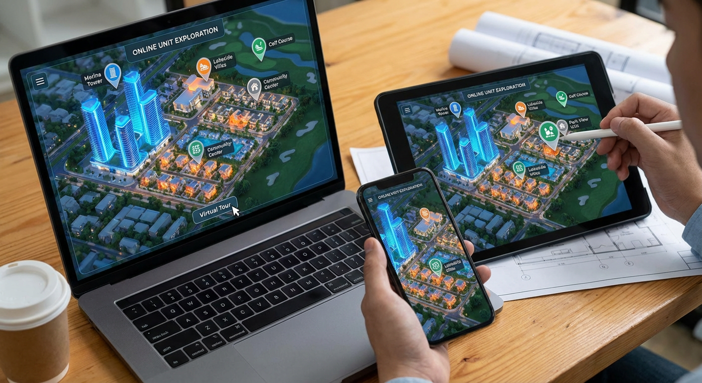 For mixed use and master planned communities, an interactive 3D map that explains phases, amenities, and access can significantly reduce confusion during early sales.